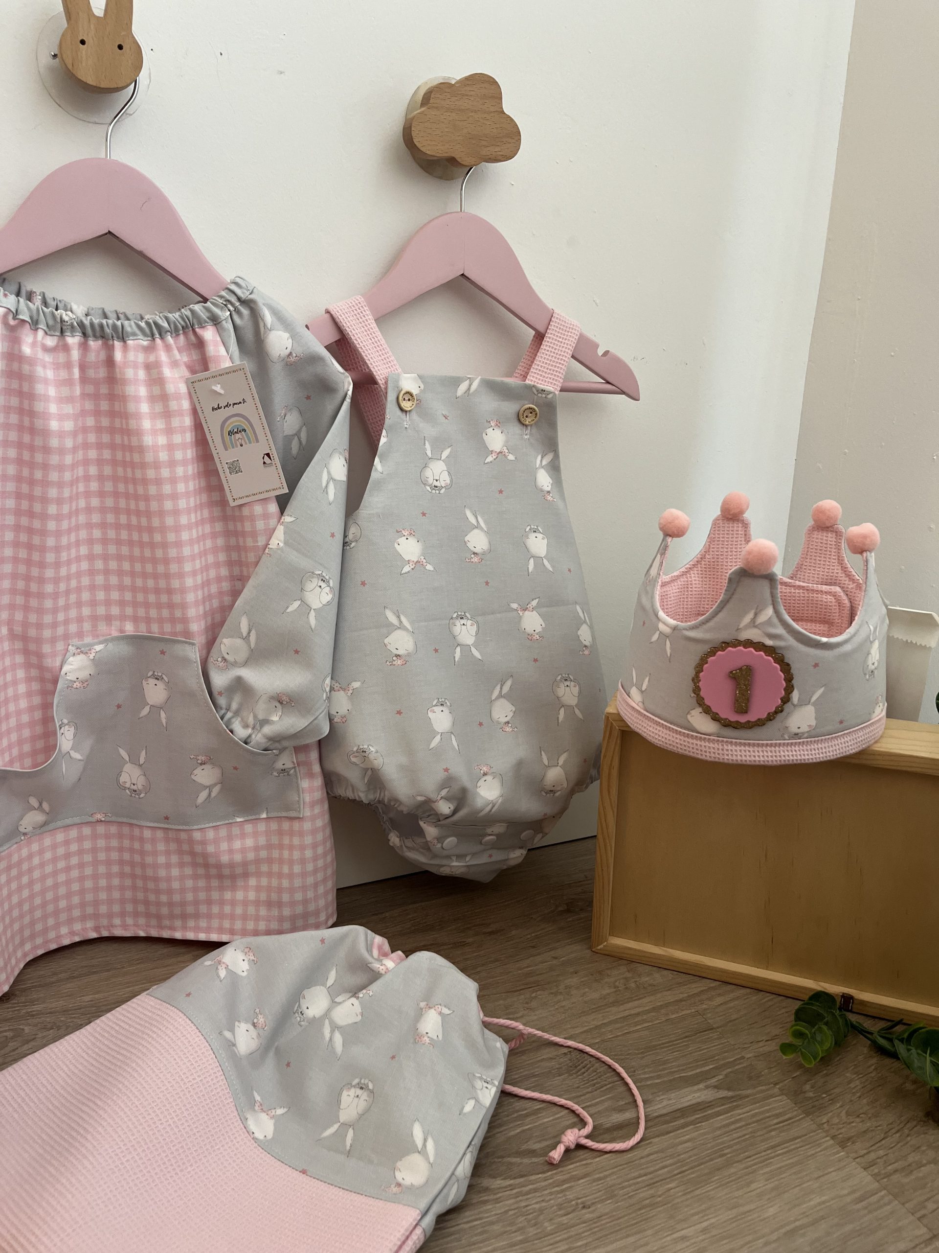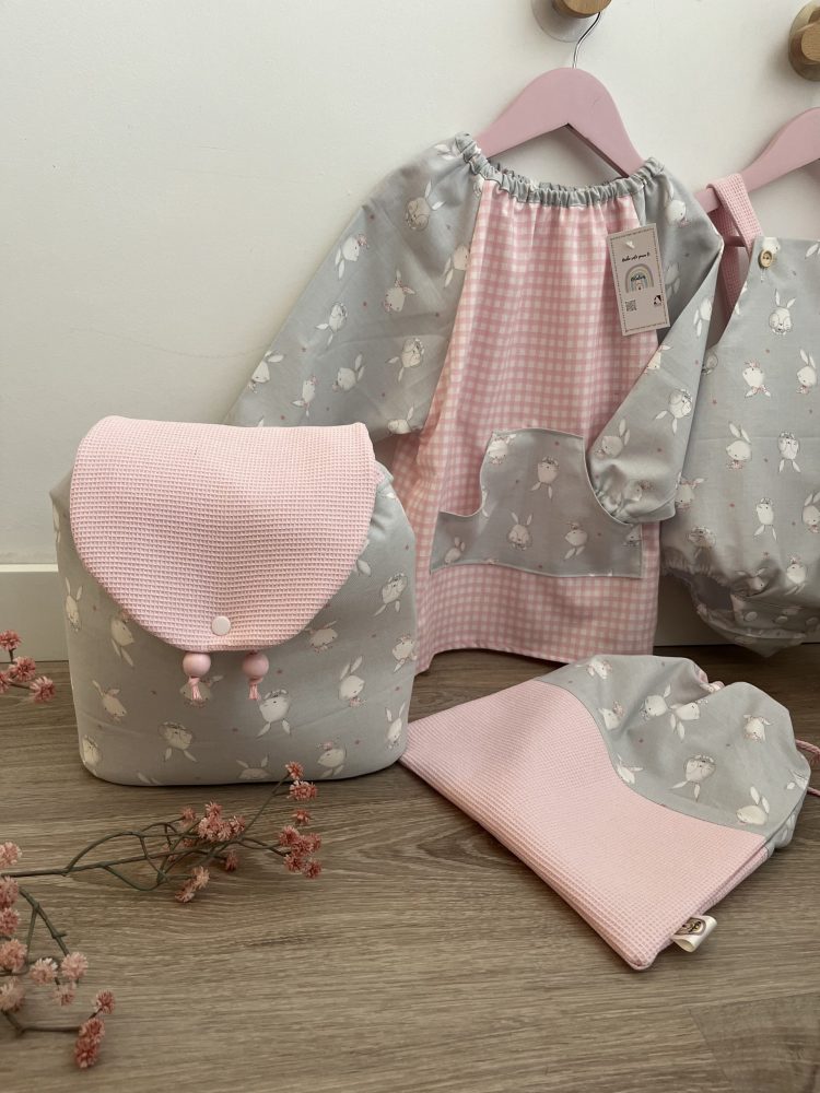 Preciosa mochila acolchada de conejitos de tela viyela .Con asas regulables, medidas 25x 26 de alto. Opción de personalizarla con nombre bordado incluido en el precio, solo tienes que añadir el nombre de la niña en la casilla de personalización.